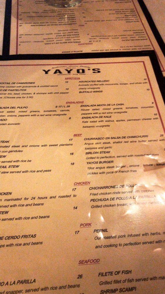 Yayo's Latin Cuisine, located in Brooklyn, offers a diverse menu featuring authentic Latin American dishes. With a casual yet vibrant atmosphere, this restaurant is perfect for brunch, lunch, or dinner. Offering delivery, takeout, and catering services, Yayo's aims to cater to every need of its customers. From delicious steak and eggs to flavorful Mofongo, the menu boasts a variety of options sure to satisfy any craving. The cozy ambiance and friendly staff make dining at Yayo's a delightful experience. Don't miss out on the opportunity to indulge in their well-crafted cocktails and mouthwatering Latin cuisine. Experience the rich flavors and chill vibe of Yayo's Latin Cuisine for a truly satisfying dining experience.